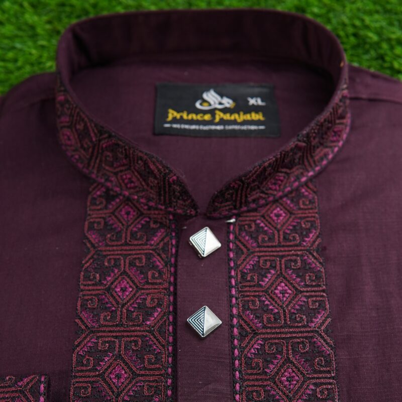 ✅ ডিজাইন: এম্ব্রয়ডারি দ্বারা সুসজ্জিত কলার ও চেস্ট, যা যোগ করেছে ক্লাসি ফিনিশিং