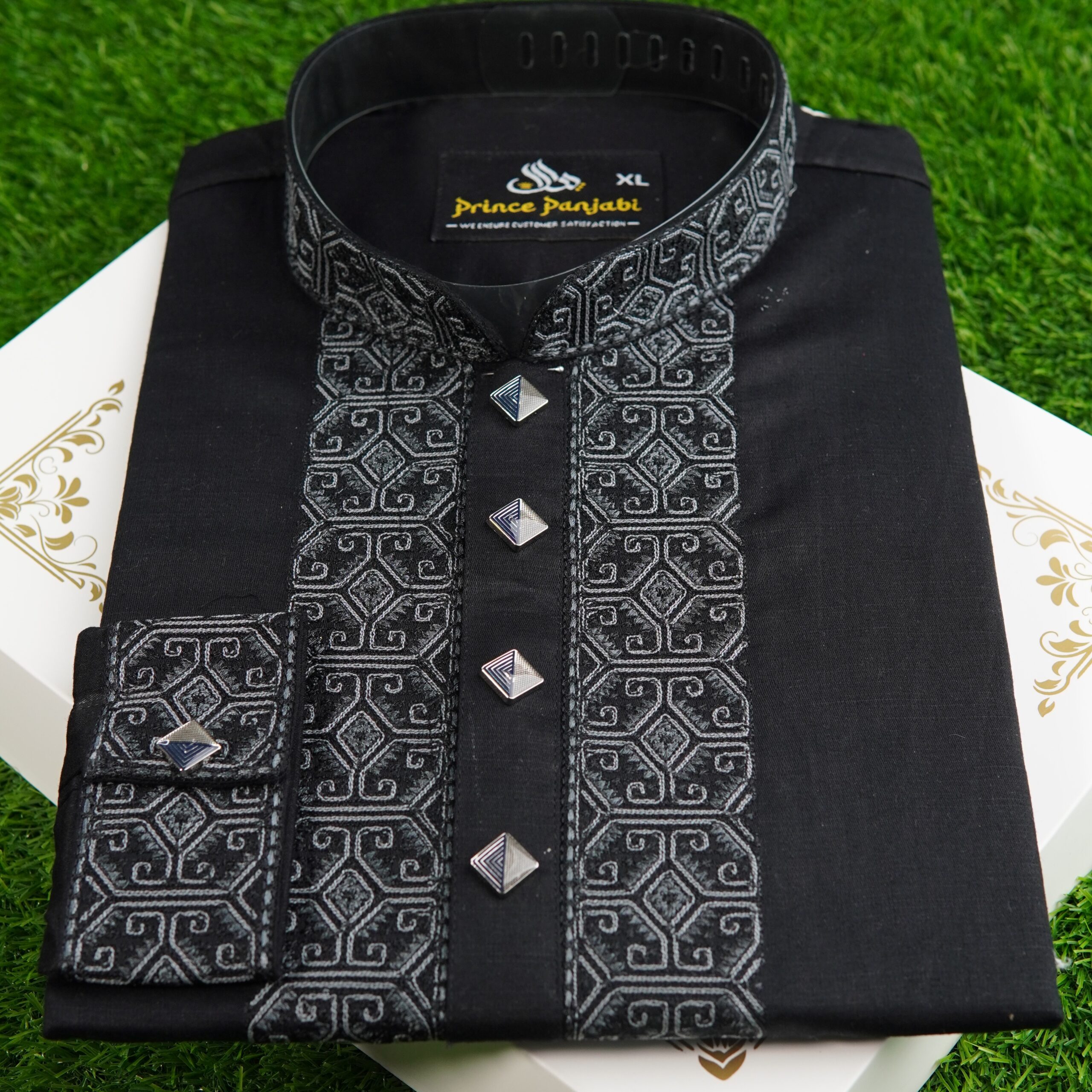 ✅ ডিজাইন: এম্ব্রয়ডারি দ্বারা সুসজ্জিত কলার ও চেস্ট, যা যোগ করেছে ক্লাসি ফিনিশিং